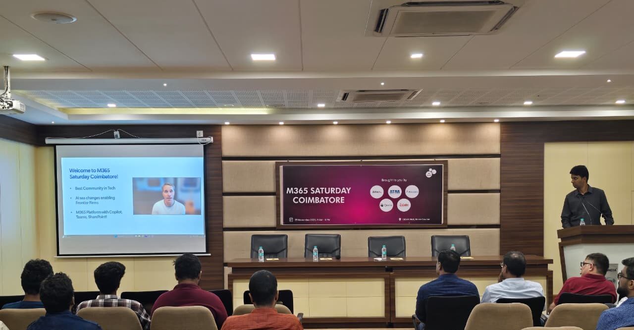 M365 Saturday Coimbatore – AI@Work 2025 brought together professionals, students, and tech enthusiasts for a full day of learning on Microsoft 365, Copilot, Power Platform, and Azure AI. The event created a vibrant space for knowledge sharing and community growth.